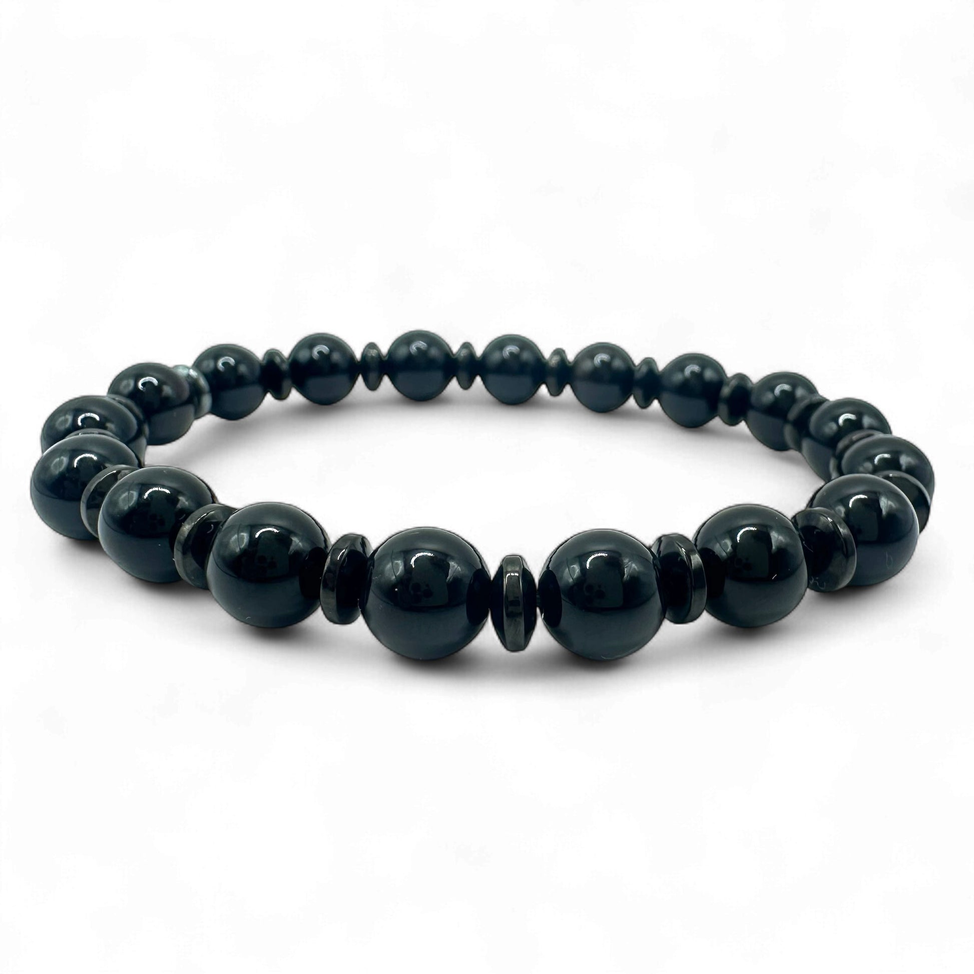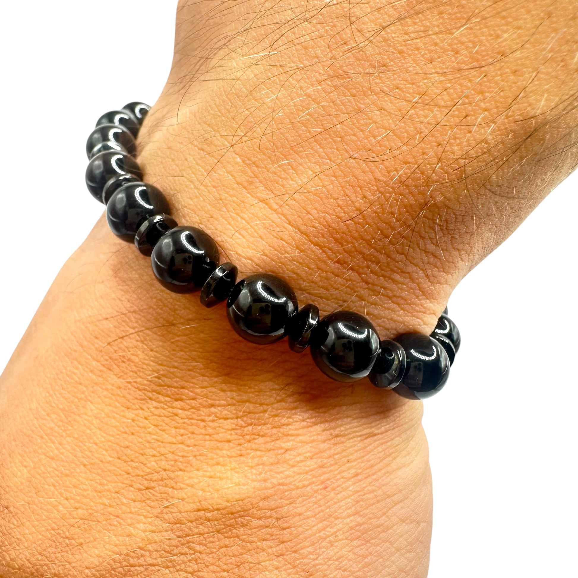Brățara mărgele Hematit este definită prin forță, echilibru și eleganță sobră. Mărgelele de onix negru oferă protecție și claritate interioară, în timp ce hematitul adaugă un accent metalic discret și simbolizează stabilitatea și concentrarea. O brățară versatilă, ideală pentru un stil modern, rafinat și ancorat în prezent